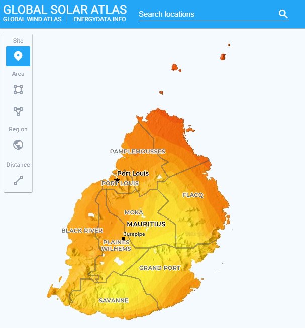 Global Solar Atlas (The World Bank Group):Global Solar Atlas (The World Bank Group) World Bank and the International Finance Corporation, collectively The World Bank Group, have provided this Global Solar Atlas in addition to a series of global, regional and country GIS data layers and poster maps, to support the scale-up of solar power. The primary aim of this Global Solar Atlas is to provide quick and easy access to solar resource and photovoltaic power potential data globally, at a click of a mouse. | ![]() |