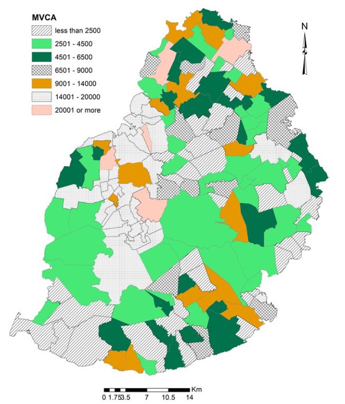 Mid - year population by Municipal Ward/Village Council Area (MVCA) - Island of Mauritius 2022 (source: SM) |