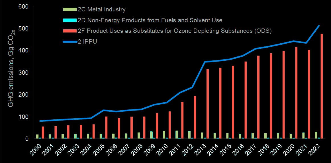 GHG emission trend of IPPU sector of RoM from 2000 to 2022. source: BTR/NID 2024 | ||