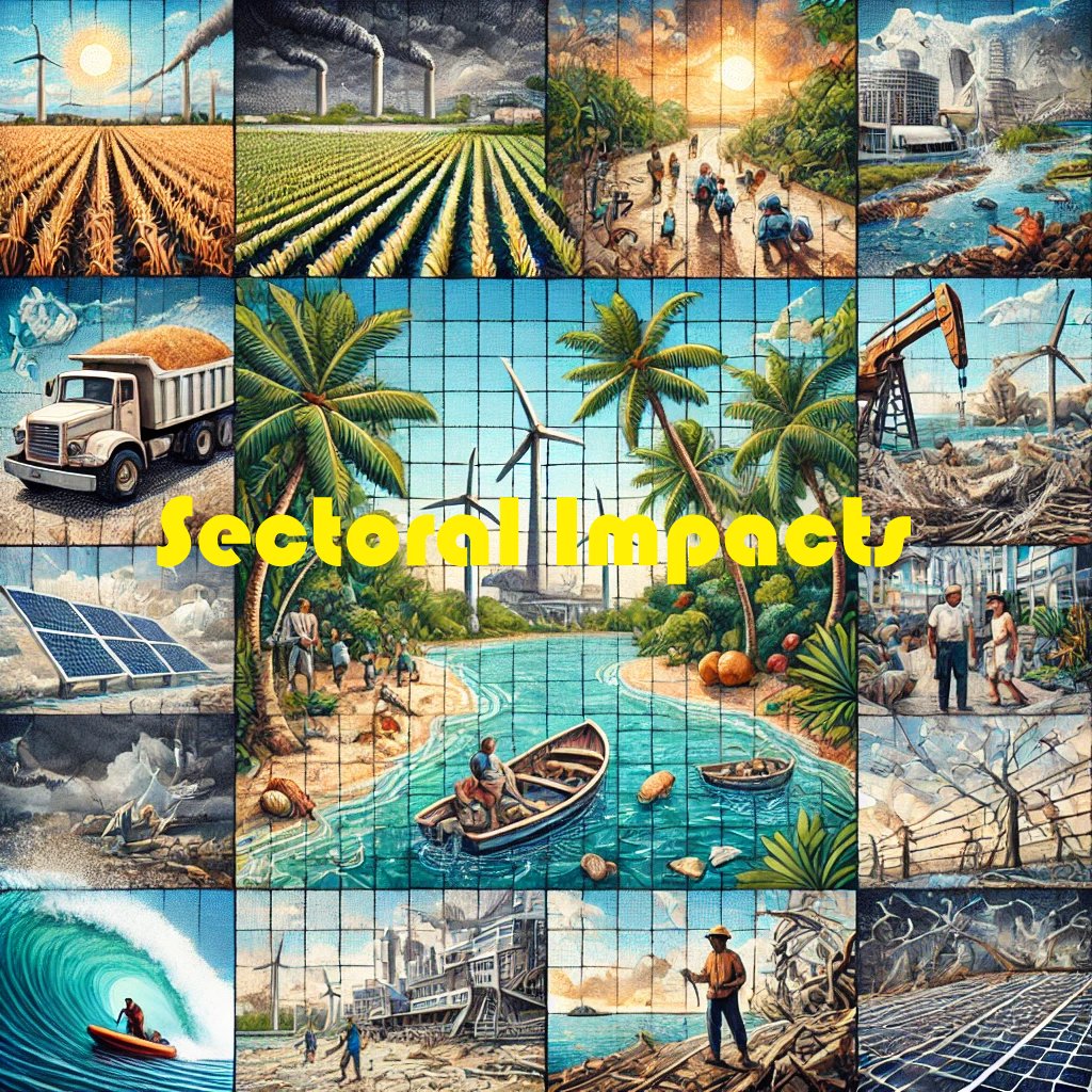 Focus on rising sea levels, changes in rainfall, and temperature increases, as well as their effects on ecosystems, biodiversity, and natural resources. | An overview of how climate change and hazards are affecting both the social fabric and the economy of Mauritius, highlighting the interconnectedness between livelihoods, public health, infrastructure, and economic stability. | Specific consequences of climate change across Mauritius's key sectors, detailing how shifts in climate patterns directly affect operational sustainability, sectoral output, and long-term viability. | ||||