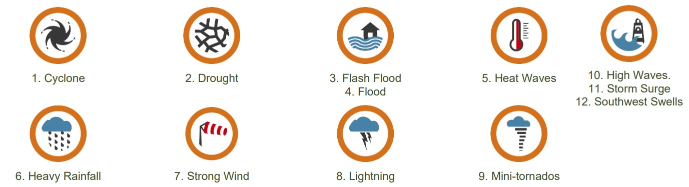 | * | This categorization includes important subtleties. For example, while cyclones are a major hazard for the Republic of Mauritius, their impact varies. Typically, cyclones cause damage through high winds and heavy rainfall, which can lead to flash floods and landslides. However, certain cyclones may bring minimal rainfall and primarily cause damage through high winds alone, without leading to flooding or landslides. | ||