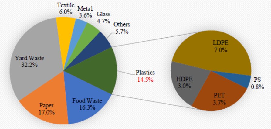 Plastics represent 14.5% of MSW, contributing to environmental contamination.