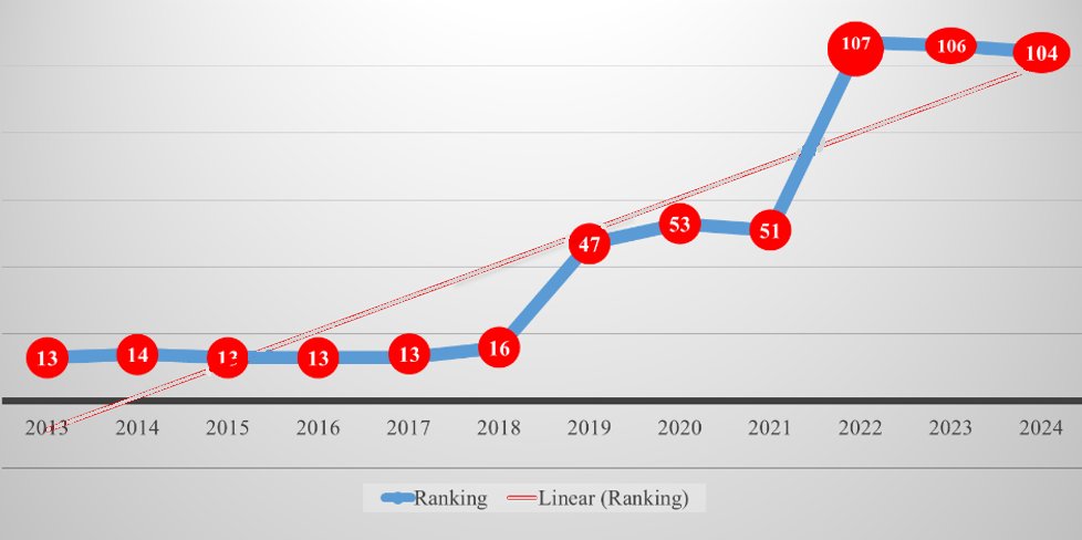 In the 2024 World Risk Report, Mauritius was ranked 104th out of 193 countries, with rankings designed such that the lower the rank (closer to 1), the higher the risk, and the higher the rank (closer to 193), the lower the risk. It covers all United Nations member states and more than 99% of the world’s population. Mauritius received a total Index score of 3.58 on a scale from 0 to 100, where 0 indicates minimal risk and 100 indicates maximum risk, categorizing it within the "medium" risk class. | ![]() Detailed component scores for Mauritius were as follows: WorldRiskIndex: 3.58 (medium) Exposure: 0.73 (medium) | |