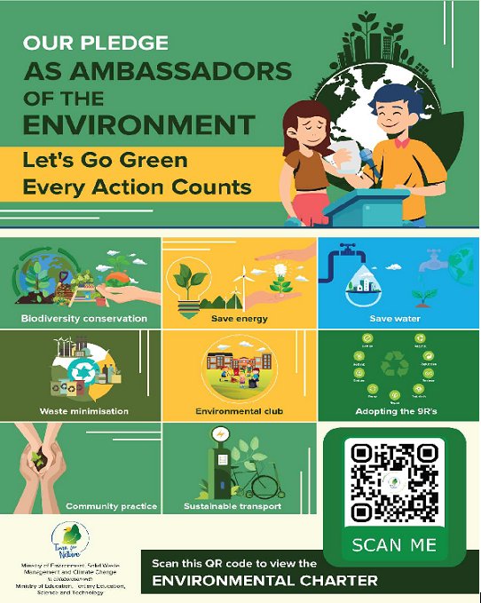 Development of environmental charter for secondary studentsThe world has long acknowledged the need to harness the power of education to meet sustainable development challenges. Young people are considered as ambassadors of change and progress and in line with this Government’s vision to instill a culture of conservation and protection of the environment in our children. As such this Ministry has in collaboration with the Ministry of Education, Tertiary Education, Science and Technology developed and launched an Environmental Charter for Secondary school for the adoption of best environmental practices. |