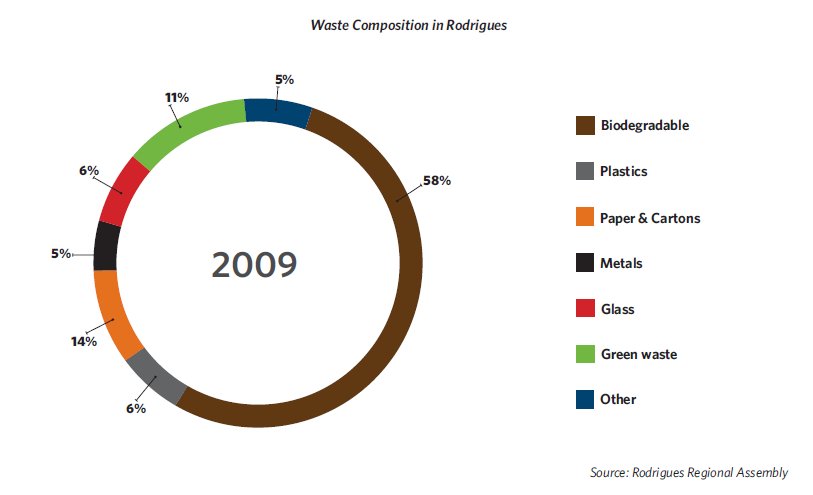 Circular Waste ManagementCurrently, Rodrigues does not have a fully established circular waste management system, but there are some elements of circularity in its waste management practices. The island still largely relies on linear waste management, where waste is collected, stored, and either sent to landfill or exported to Mauritius for recycling. However, a few initiatives align with circular economy principles, particularly in organic waste composting, recycling, and reusing materials. Existing Circular Waste Management Elements in Rodrigues