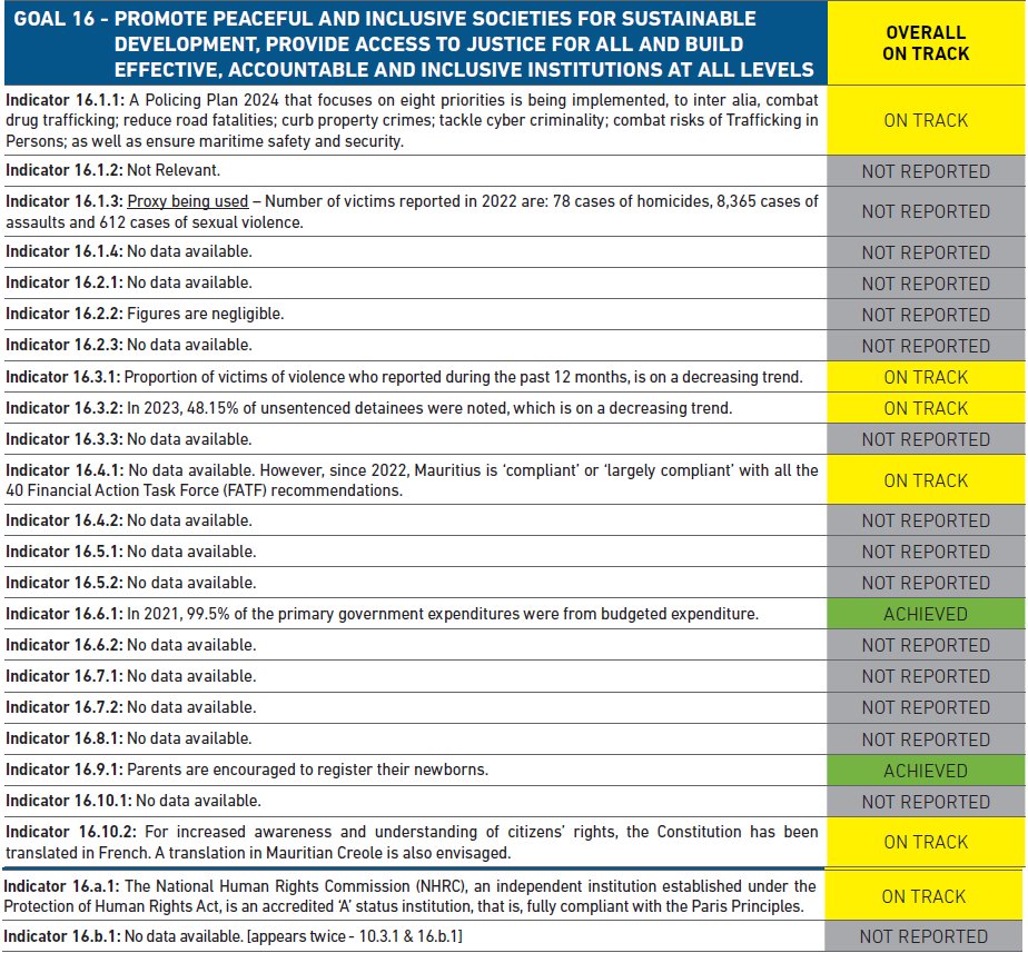 SDG 16: Peace, Justice and Strong Institutions in the Mauritius Voluntary National Review 2024
