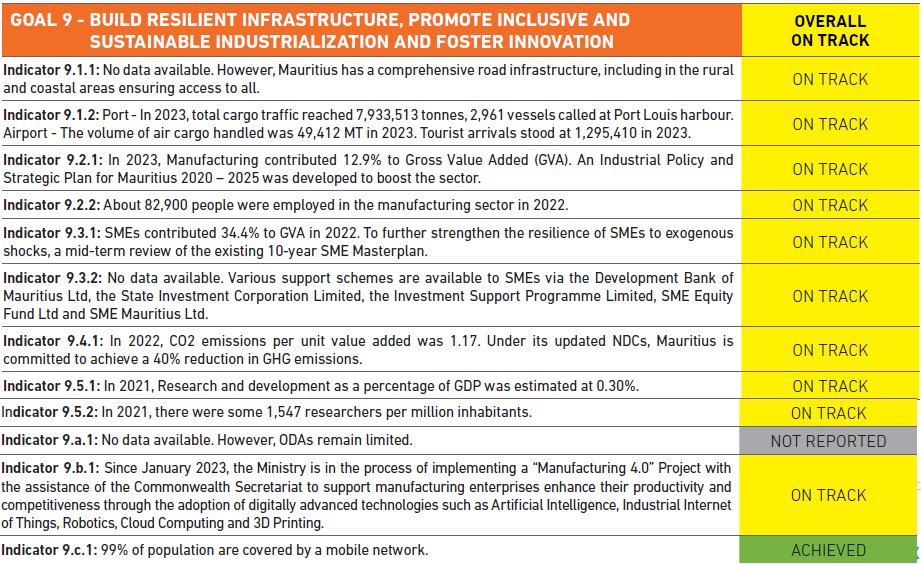 SDG 9: Industry, Innovation and Infrastructure in the Mauritius Voluntary National Review 2024